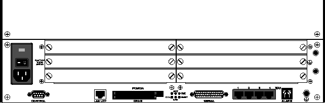 The Multiband inverse-multiplexing card (Figure 1-6) has two or six user-selectable RS-449, V.35, or X.21 serial host ports with inverse-multiplexing and RS-366 capability, V.25bis, or control-lead signaling.