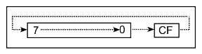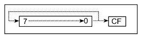Each bit is shifted to the next lowest-order bit position (Bit 7 shifts to bit 6, etc.) Bit 0 shift to the C flag. Bit 7