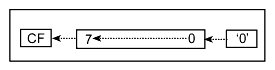 next lowest-order bit position (Bit 7 shifts to bit 6, etc.) Bit 0 shift to the C flag. Bit 7 is reset. See Figure 9 on