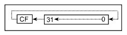 Rotates BCDE to the left with the C flag. Each bit in the register moves to the next highest-order bit position (bit 0 moves to bit 1, etc.) while the C flag moves to bit 0 and bit 31 moves to the C flag. This operation happens b number of times.