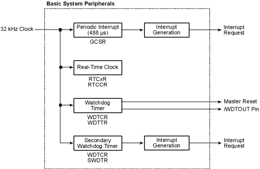 The periodic interrupt, real-time clock, watchdog timer, and secondary watchdog timer require the 32 kHz clock.